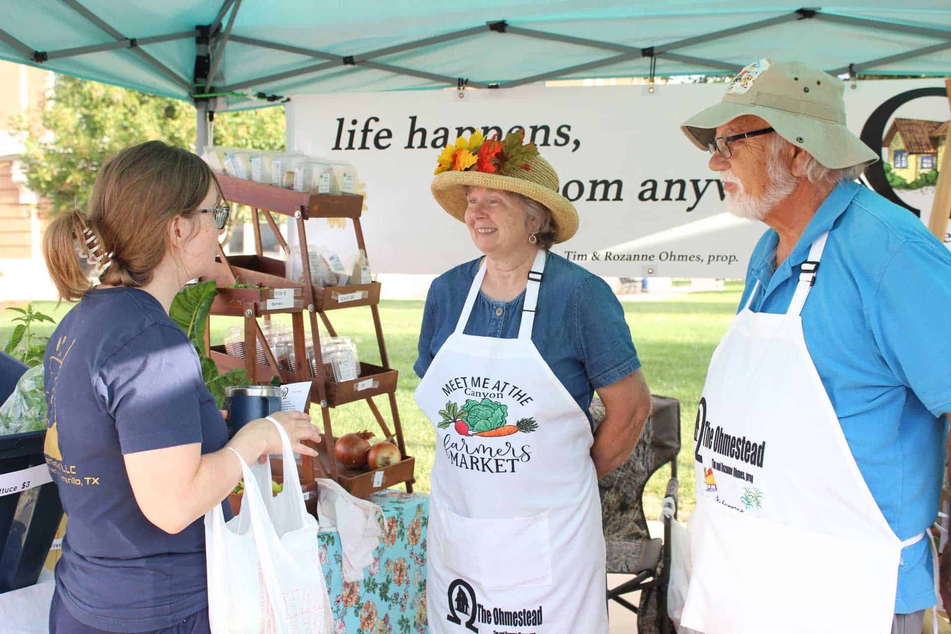 We are excited to bring the finest locally grown produce, homemade baked goods, homemade arts and crafts, live music, children’s activities, and food trucks to you each Saturday morning of our market season. With over 100 vendors each week, the Canyon Farmers' Market offers items and an experience of the highest quality for each person who attends. Our vendors sell locally grown squash, melons, tomatoes, beans, potatoes, peppers, watermelon, canned goods, honey, soap, baked items, craft items, crochet items and much more. We are a vibrant community of local producers and we look forward to meeting you!